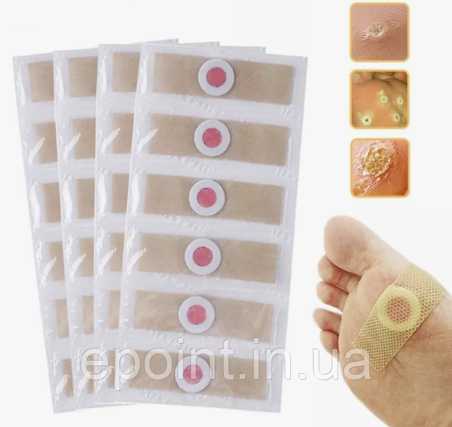 Пластир для ніг від натоптнів і стрижневих мозолів, патч-наклейка, засіб, який має бути завжди під рукою. Тільки для зовнішнього застосування. Міняйте раз на два дні, для найкращого ефекту розпарте зону ураженої зони шкіри та прикріпіть пластир. Після застосування упродовж 1-2 доби, оброблювана частина стане білого кольору.