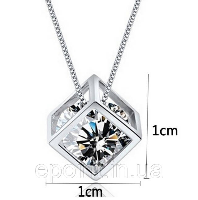 Модна підвіска прикраса на ланцюжку "Чарівний куб" з білим кристалом, сріблястий колір